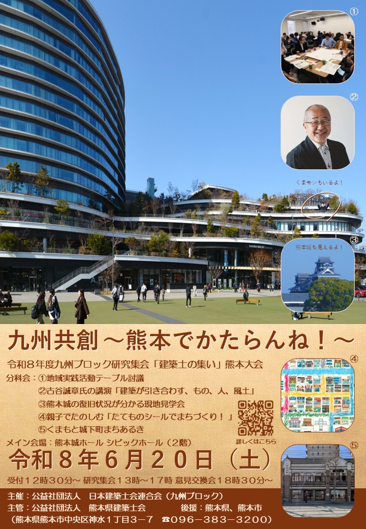 | 令和8年度 九州ブロック研究集会「建築士の集い」熊本大会開催のご案内 | |||